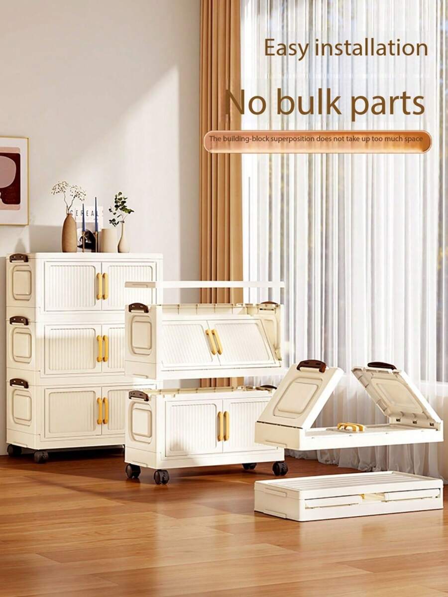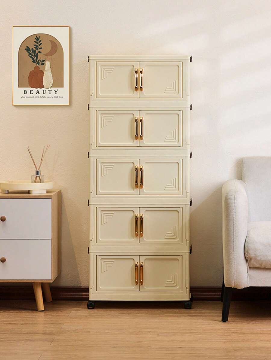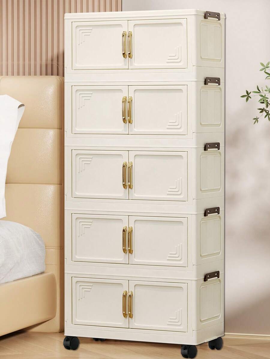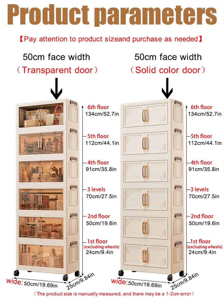 50cm Folding Storage Cabinet – Portable, Double Door, Multi-Layer