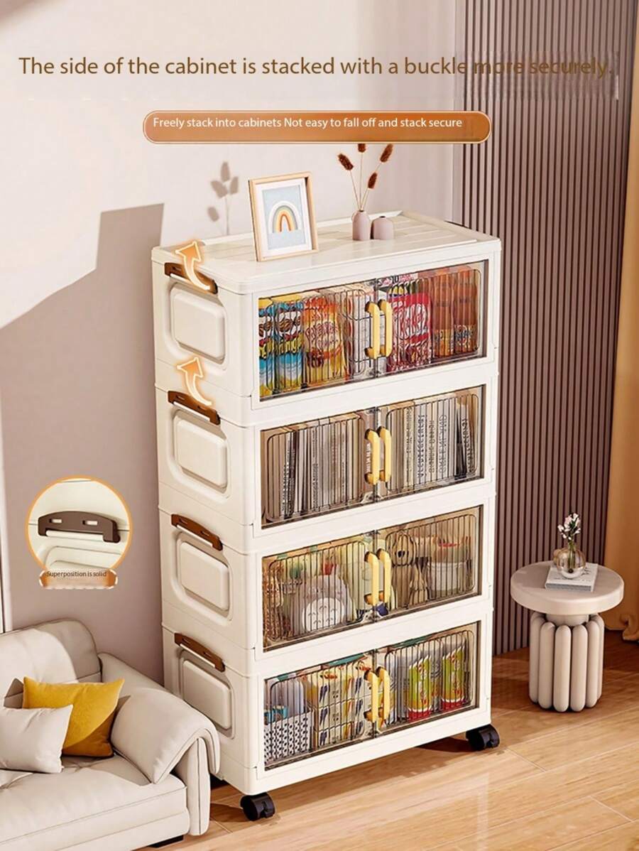 4-Tier Plastic Storage Cabinet – Foldable with Wheels