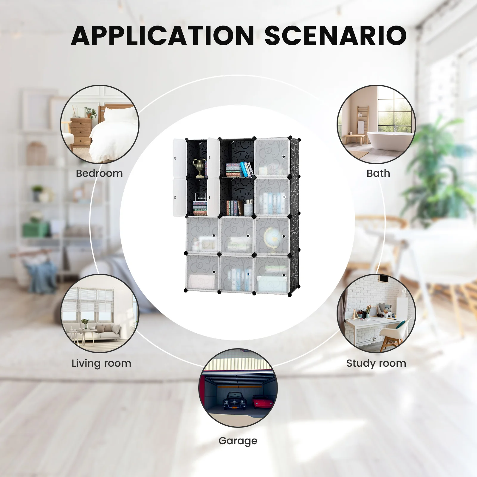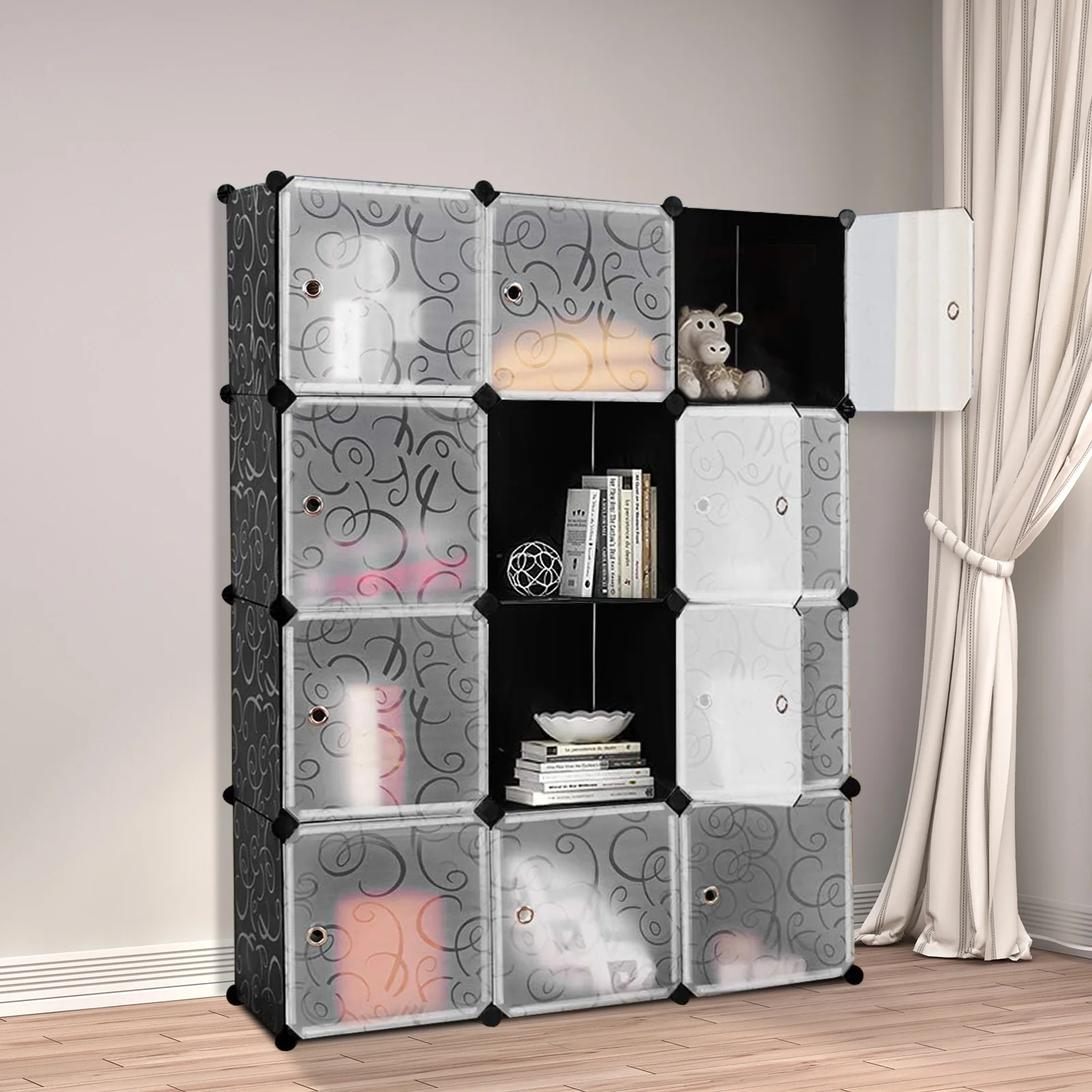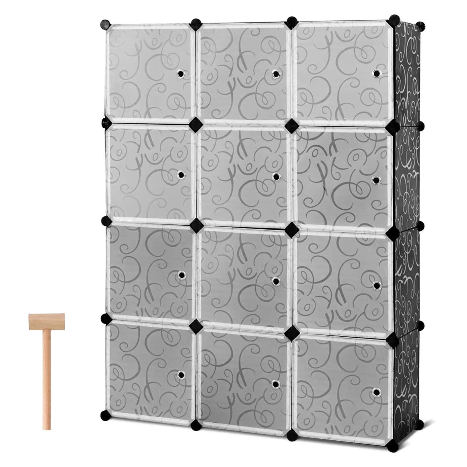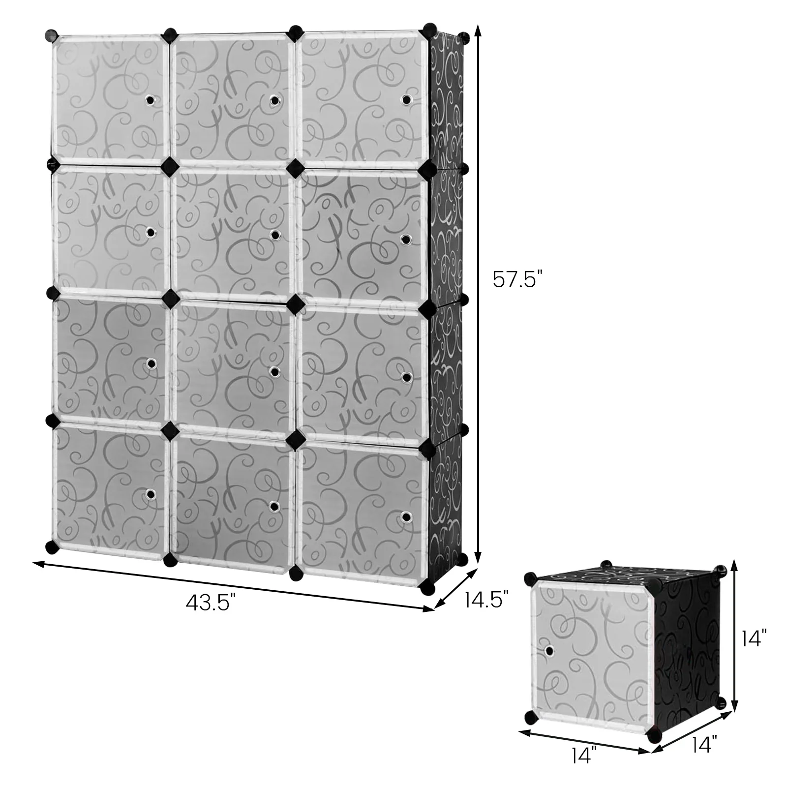 DIY 12 Cube Portable Closet Storage Organizer Clothes Wardrobe Cabinet W/Doors
