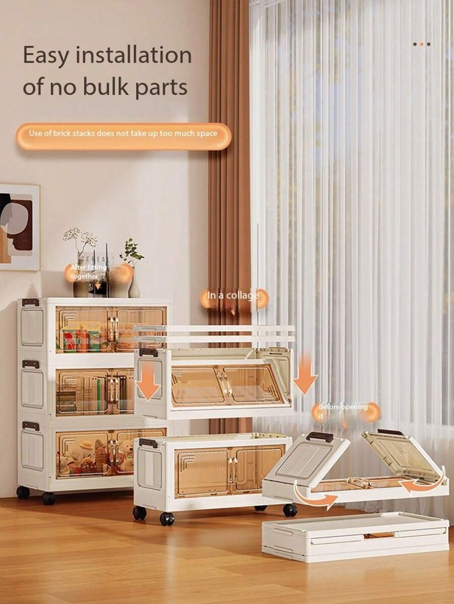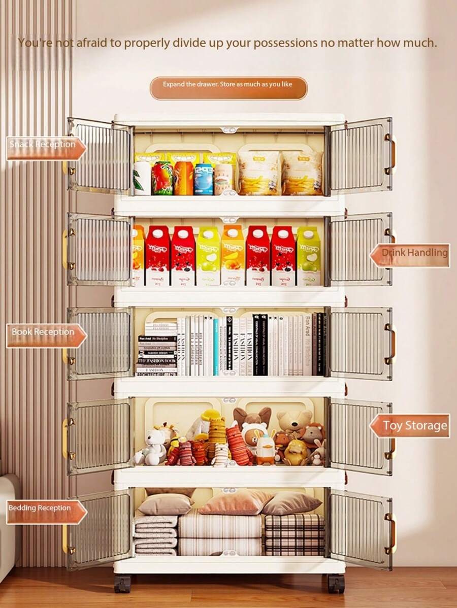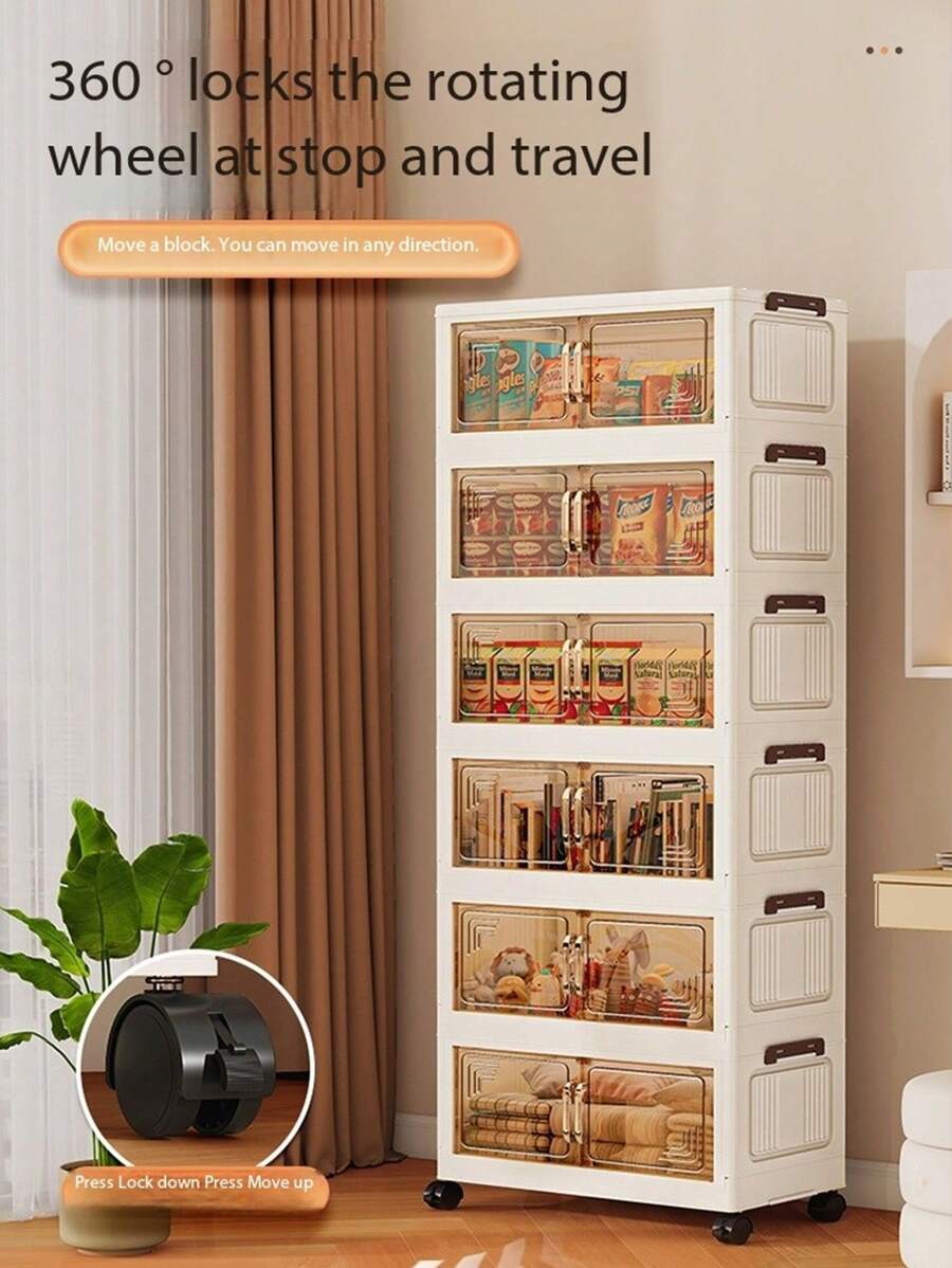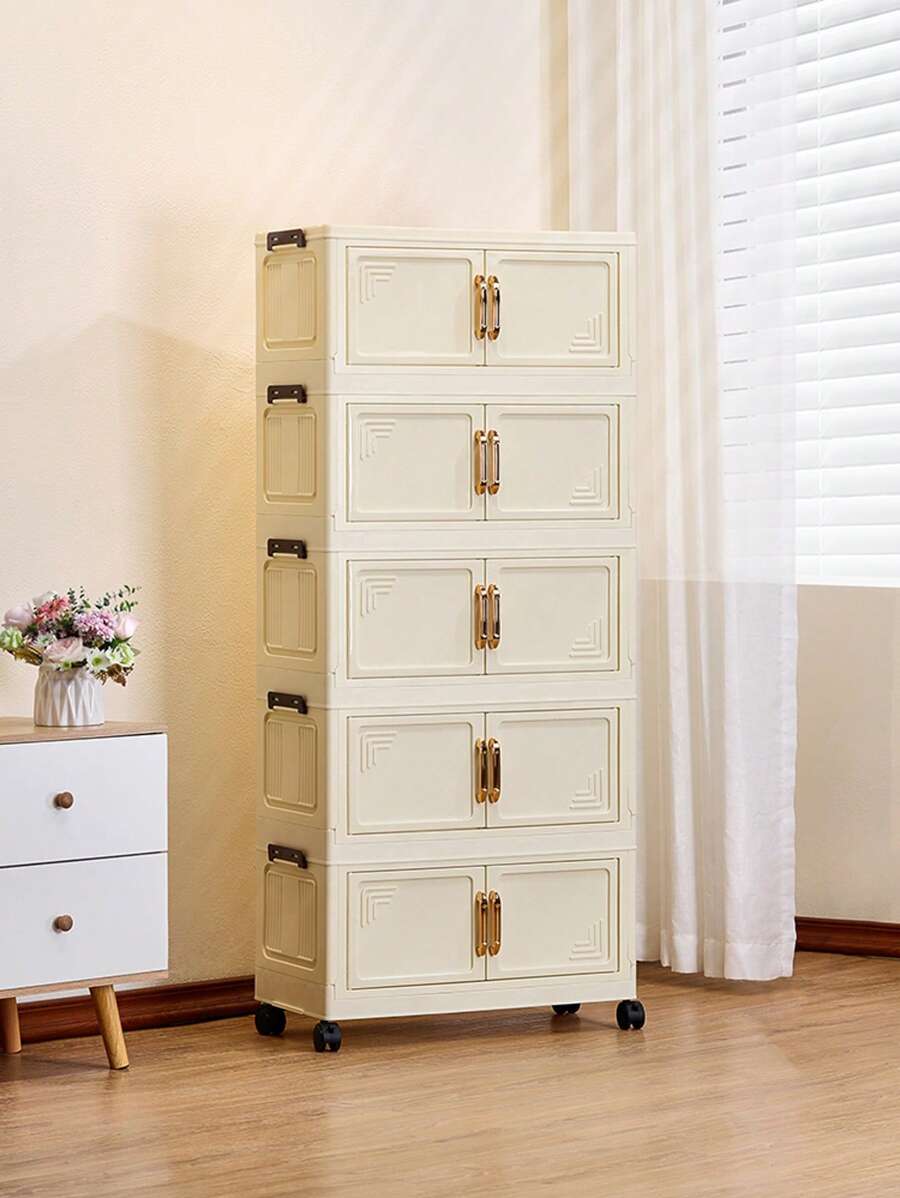 4-Tier Plastic Storage Cabinet – Foldable with Wheels