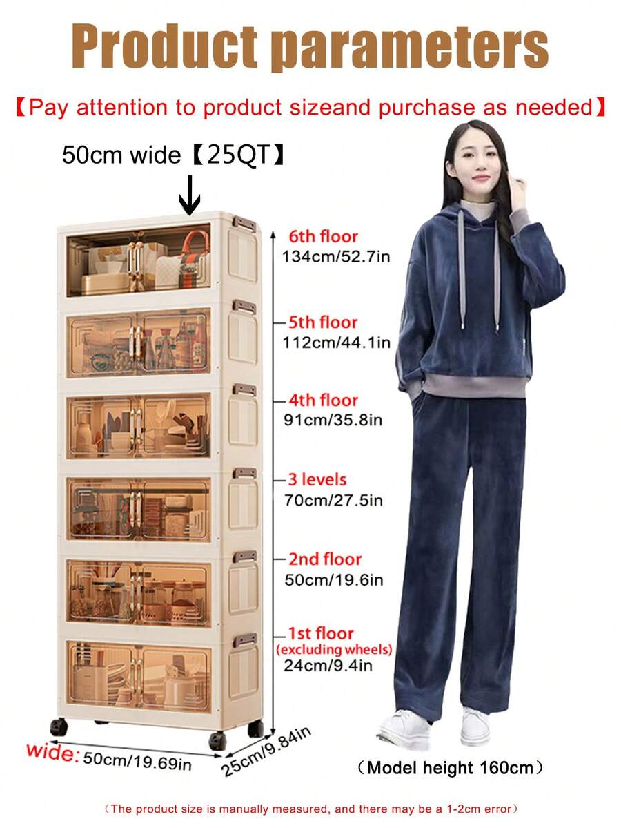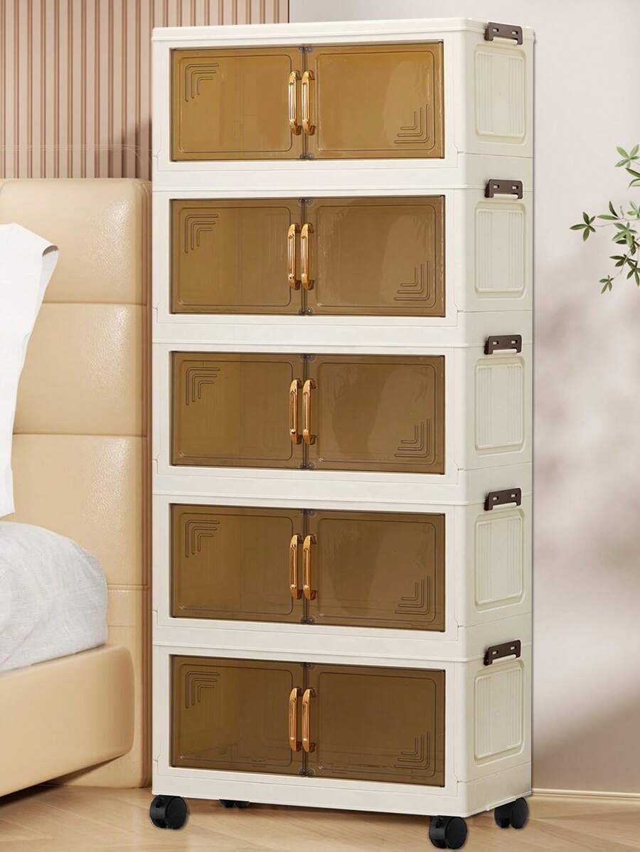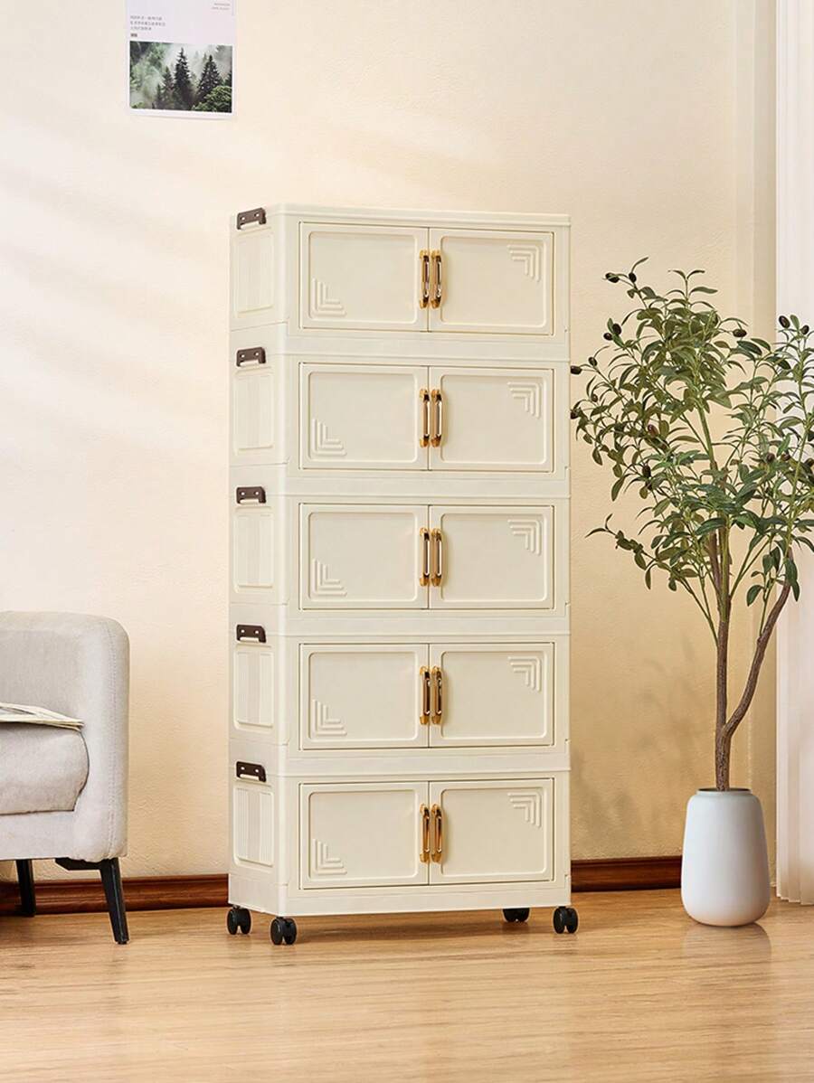 50cm Folding Storage Cabinet – Portable, Double Door, Multi-Layer