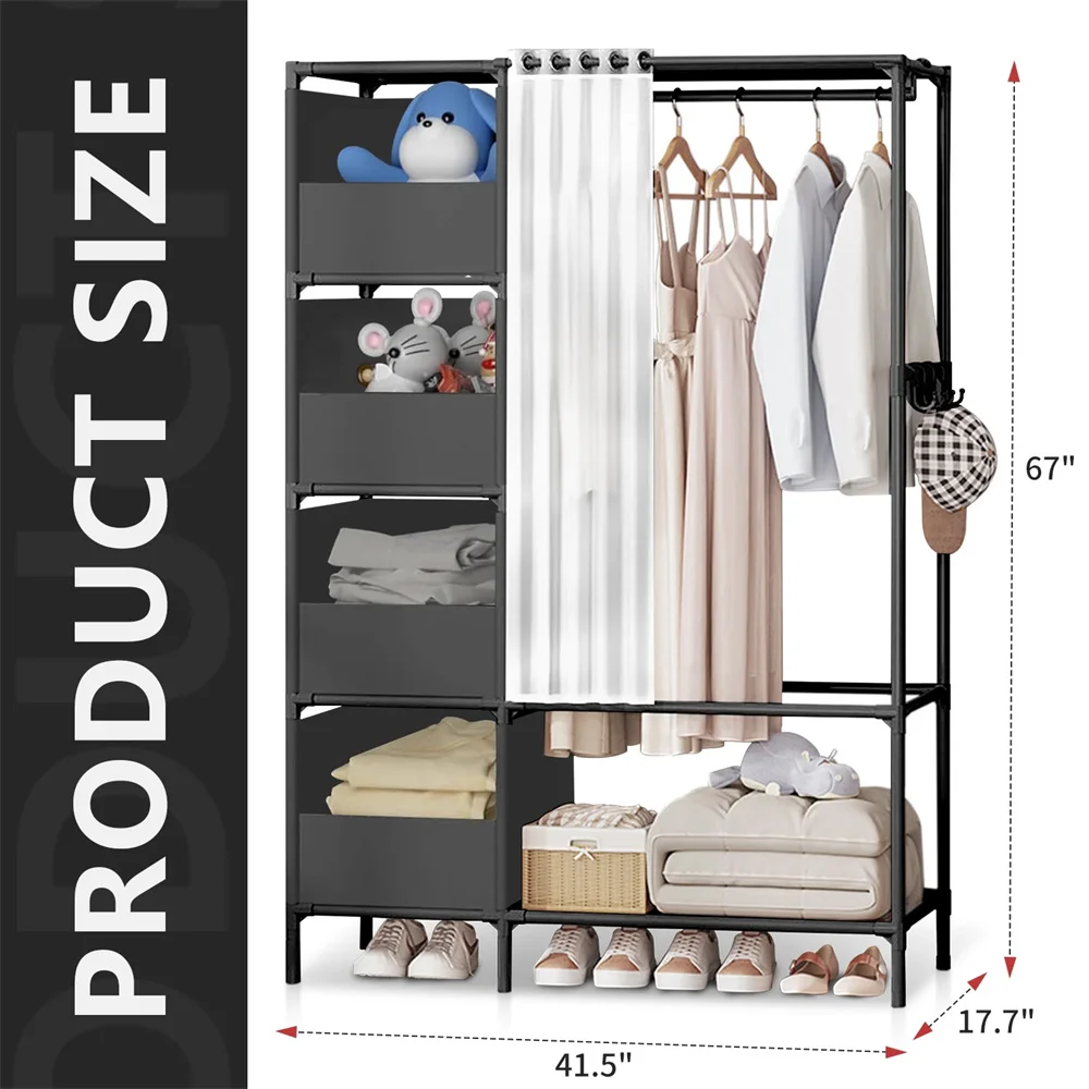 Portable Clothes Wardrobe – 4-Shelf Closet with Curtain