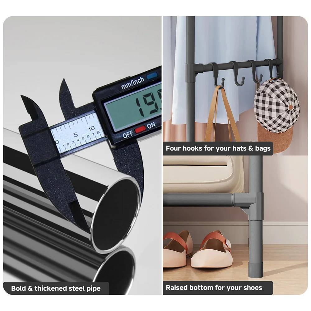 This clothes rack provides semi-open storage space for your clothes. with multiple storage areas and dust curtains. making it easier for you to select clothes and store items.
