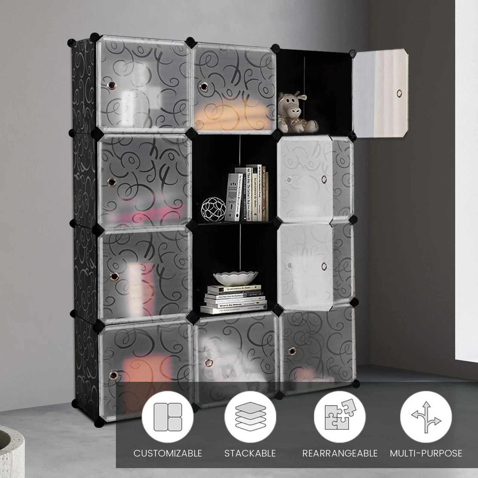 DIY 12 Cube Portable Closet Storage Organizer Clothes Wardrobe Cabinet W/Doors